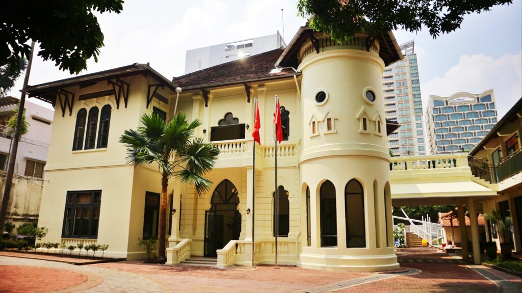 Trụ sở tạm của Nhà văn hóa Thanh niên mang dáng hình cổ điển của một biệt thự cổ thời Pháp. Ảnh: Quốc Thái Lê.