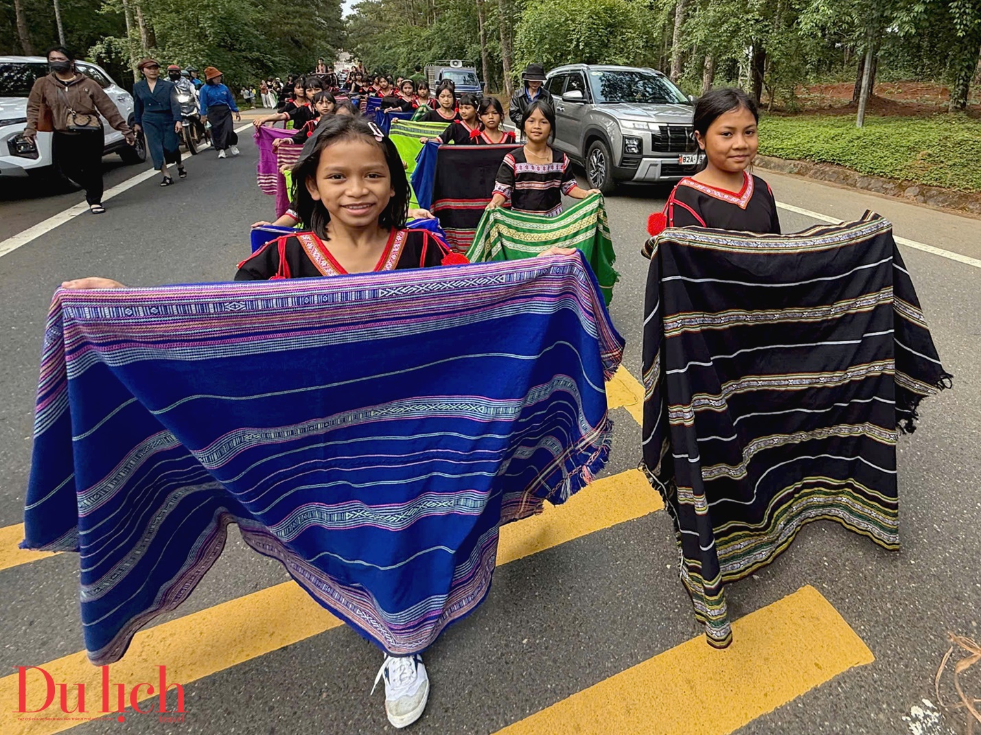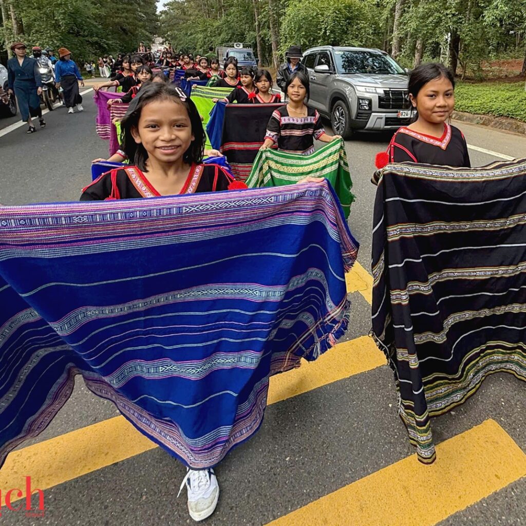 Các nghệ nhân, diễn viên biểu diễn trên tuyến đường đẹp bậc nhất của Măng Đen, kéo dài gần 3 km từ ngã 5 Quốc lộ 24 đến khu Vườn nghệ thuật. Dòng người trong trang phục thổ cẩm rực rỡ nối dài, hòa quyện cùng sắc màu của núi rừng. Những nghệ nhân, học sinh đồng bào Xơ Đăng say sưa trình diễn cồng chiêng, múa xoang; xen lẫn là những màn biểu diễn cà kheo, hóa trang nghệ thuật đầy sáng tạo, tạo nên một “sân khấu mở” giữa thiên nhiên.