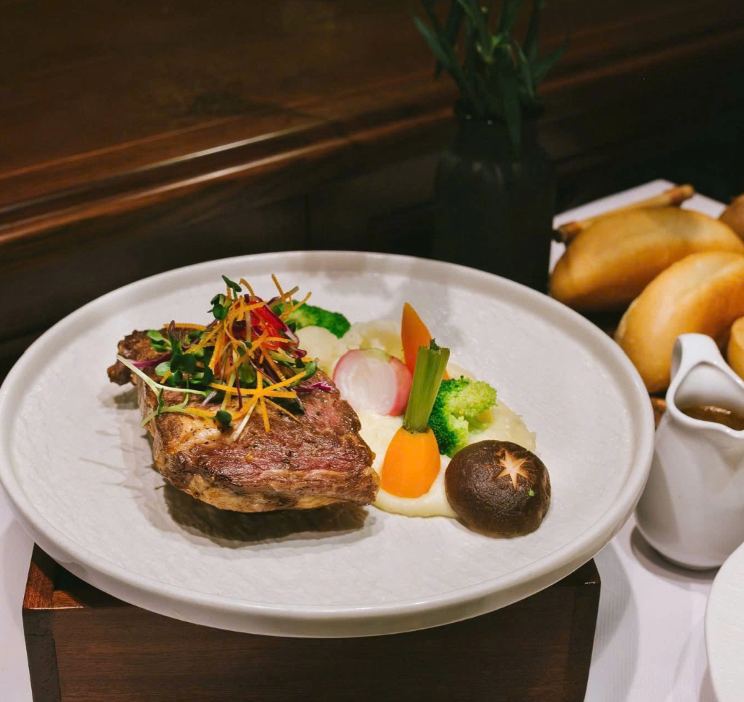 Nhà hàng nổi bật với thực đơn bít tết kiểu Pháp được chế biến tỉ mỉ từ những nguyên liệu tuyển chọn. Những món như: AUS Top Blade (lõi vai bò Úc), AUS Striploin (thăn ngoại bò Úc), Grilled Lamb Rack (sườn cừu kiểu Pháp), đùi cừu nấu chậm với hành tím và rượu vang hay thịt vịt hầm kiểu Pháp đều được trình bày tinh tế, giữ nguyên hương vị tự nhiên và chuẩn Âu.