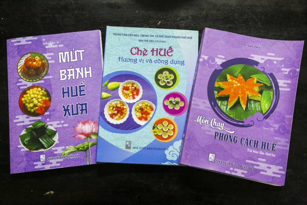 Tiếp nối quá trình nghiên cứu và truyền dạy, các cuốn “Chè Huế – Hương vị và công dụng”, “Bánh mứt Huế xưa” lần lượt ra đời. Với chè Huế, bà Trà lý giải sự phong phú bắt nguồn từ đời sống tín ngưỡng với nhiều lễ cúng trong năm. Do điều kiện trái cây xưa còn hạn chế, người Huế đã sáng tạo nhiều loại chè khác nhau, gắn với từng mùa trong năm. Chè vì thế không chỉ là món ăn, mà còn gắn liền với sinh hoạt văn hóa và tín ngưỡng. Riêng cuốn “Bánh mứt Huế xưa” được bà biên soạn với mong muốn gọi đúng tên các loại bánh, mứt truyền thống, góp phần khôi phục những món đã mai một và giúp thế hệ trẻ hiểu đúng về nề nếp bánh mứt ngày Tết của Huế. Các tập sách này giờ đã trở thành tài liệu “gối đầu” cho nhiều bà nội trợ và những người yêu bếp núc.