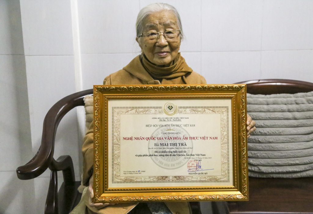 Vừa qua, nghệ nhân Mai Thị Trà là một trong số ít cá nhân được Hiệp hội Văn hóa Ẩm thực Việt Nam trao danh hiệu “Nghệ nhân Quốc gia Văn hóa Ẩm thực Việt Nam”. Đây là danh hiệu cao nhất nhằm ghi nhận những đóng góp trong việc bảo tồn, phát huy và nâng tầm tinh hoa văn hóa ẩm thực dân tộc. Theo ông Nguyễn Quốc Kỳ, Chủ tịch Hiệp hội, danh hiệu này không chỉ tôn vinh tay nghề, tri thức và tâm huyết của nghệ nhân, mà còn khẳng định ẩm thực là một di sản văn hóa sống, gắn liền với lịch sử và bản sắc các vùng miền.